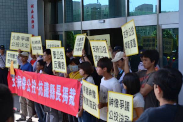 [3]這次的活動,也很幸運地親自看到一些運動人士,有幾位還是我曾經見過的郁國麟先生、行銷學代課老師、前文光國中負責教英文的陳老師等等,相當難得得碰面機會。活動的尾聲是在幾位大人把陳情書交到信箱裡之後(疑似議長在開會或是藉口不見),跟大夥討論假使政府當局仍沒有把這次的聲音聽進去,並且仍執意要興建的話,那麼這幾天就會在縣政府面前號召更多人、更多大型的示威,要讓政府清楚知道人民的需求。