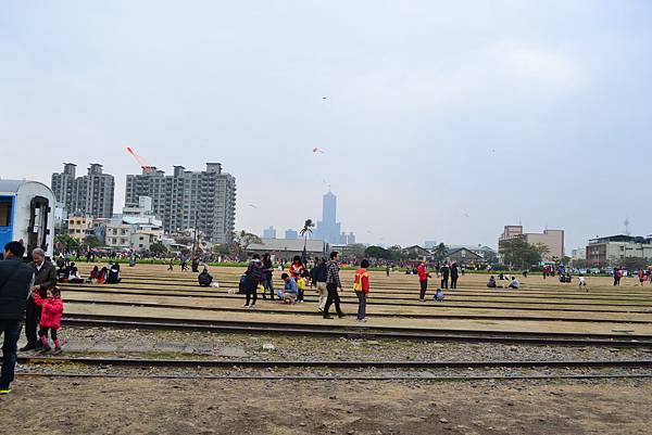 鐵道上好多人正在嬉戲 小孩子大朋友們都玩得不亦樂乎