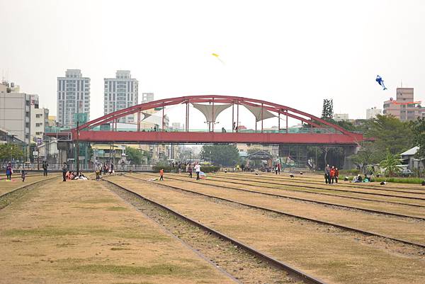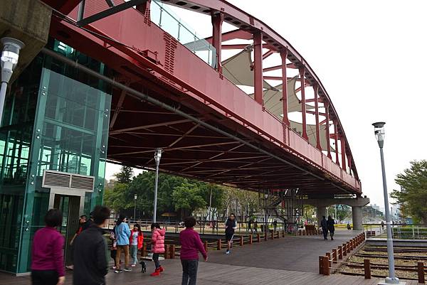 這是從鐵道上望過去的紅色拱門大橋